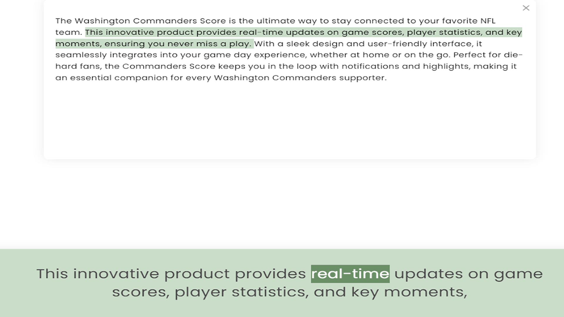 team. This innovative product provides real-time updates on game scores, player statistics, and key moments, ensuring you never miss a play. With a sleek design and user-friendly interface, it seamlessly integrates into your game day expe