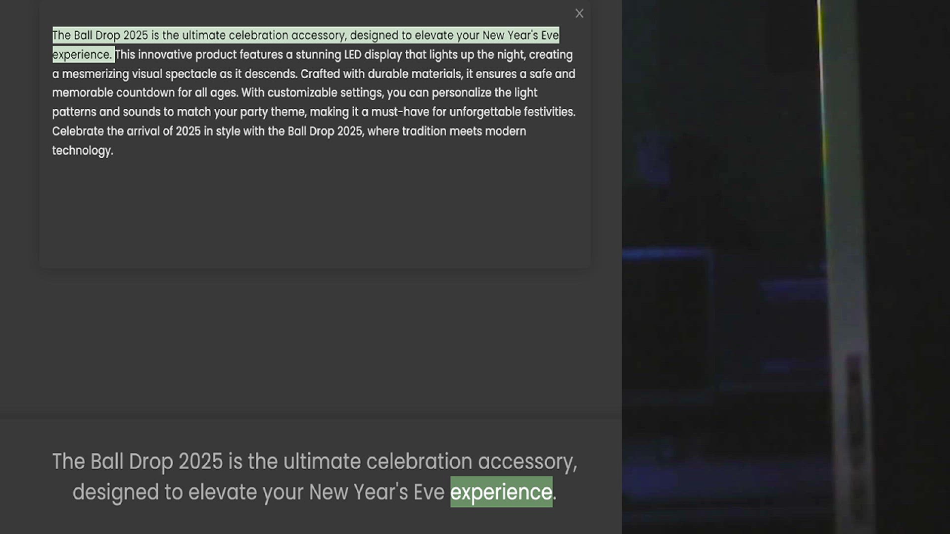 The Ball Drop 2025 is the ultimate celebration accessory, designed to elevate your New Year's Eve experience. This innovative product features a stunning LED display that lights up the night, creating a mesmerizing visual spectacle as it