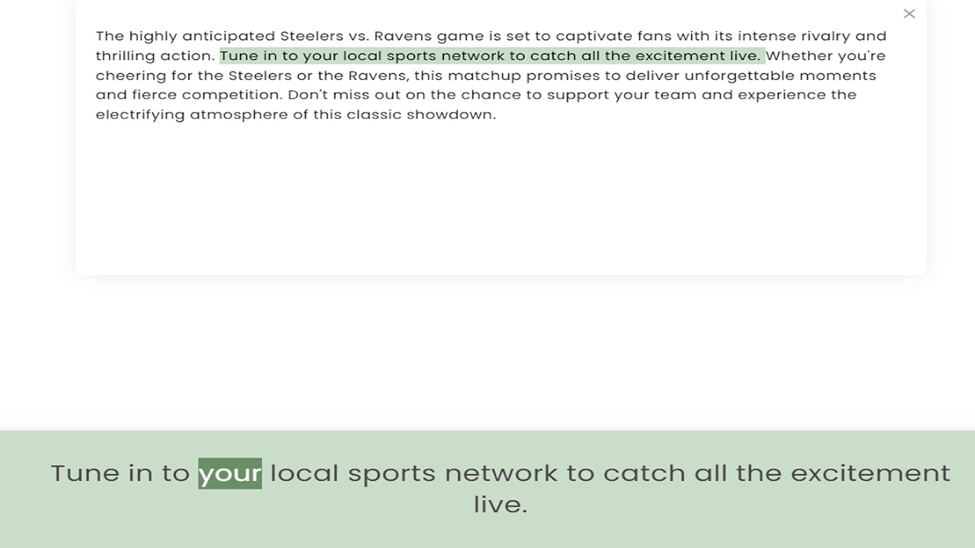thrilling action. Tune in to your local sports network to catch all the excitement live. Whether you're cheering for the Steelers or the Ravens, this matchup promises to deliver unforgettable moments and fierce competition. Don't miss out