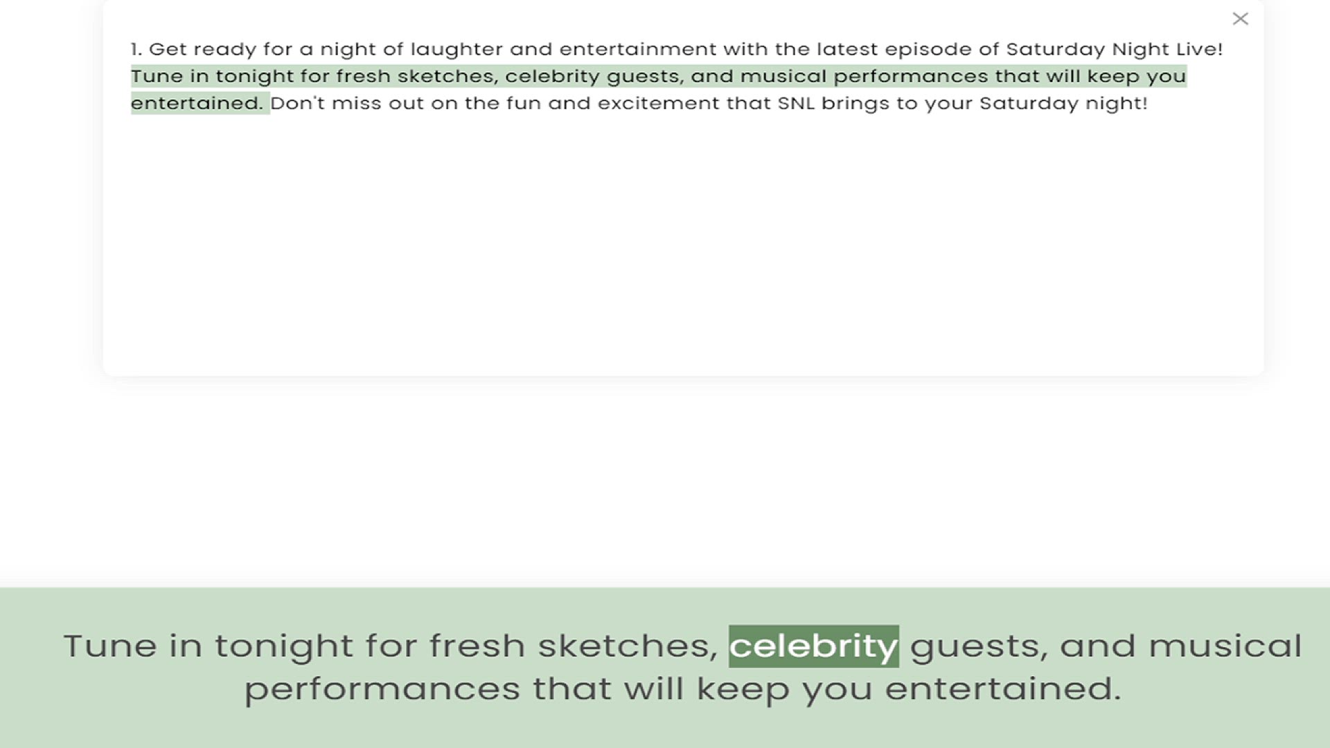 Tune in tonight for fresh sketches, celebrity guests, and musical performances that will keep you entertained. Don't miss out on the fun and excitement that SNL brings to your Satur