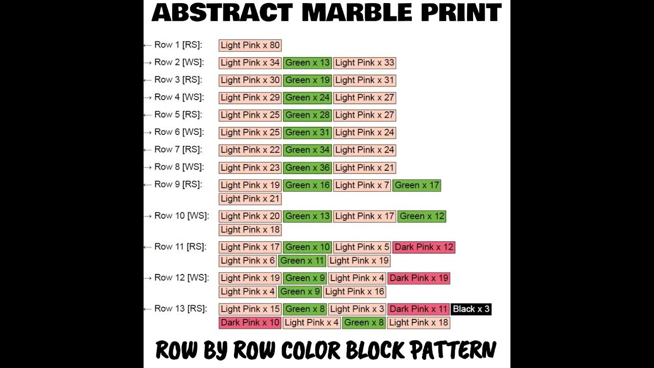 - Row by row written and color block pattern