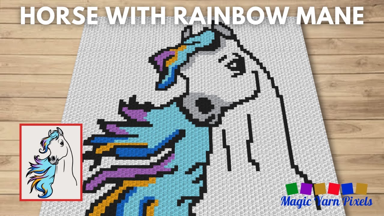 🌟Get the free graph on Magic Yarn Pixels: https://magicyarnpixels.com/horse-with-rainbow-mane-c2c-crochet-pattern-free-graph
