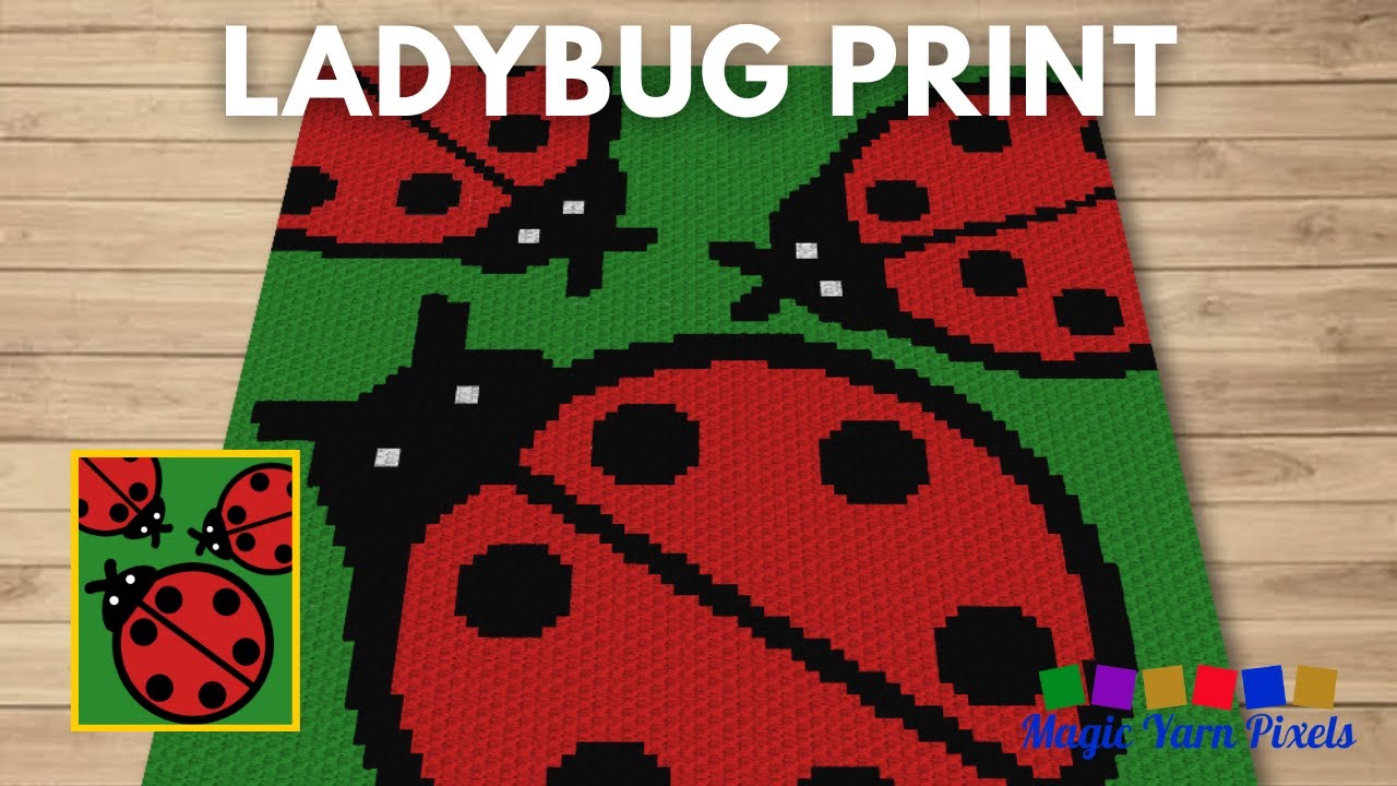 FREE GRAPH Ladybug Print C2C & Tapestry Crochet Pattern by Magic Yarn Pixels 🌟Get the free graph on Magic Yarn Pixels: https://magicyarnpixels.com/ladybug-print-c2c-crochet-pattern-free-graph 🌟Full C2C and tapestry crochet pattern available on Etsy: https://www.etsy.com/uk/listing/1263607459/ladybug-print-graph-and-pattern-c2c 🌟Get 5 free patterns every month for just $4.99/mo or 10 free patterns for just $7.99/mo. Join my Patreon here: http://bit.ly/MagicYarnPixelsPATREON Your membership includes everything you need to create your projects: - C2C written and color block pattern - Row by row written and color block pattern - Small & large graph This is the promo video for my Ladybug Print design that you can buy in my Etsy Shop. Many people hate insects, but I think that ladybugs are typically one of the exceptions because they look so cute and colorful. That's why I'm excited to share with you this adorable Ladybug Print c2c pattern. This ladybug c2c design uses just a few colors and is an exciting project that anyone can try. And since these bright-colored insects often symbolize love and good luck, it's also an ideal pattern to use to make thoughtful gifts for your loved ones. Ladybug Print is a digital download (available in PDF format only) that you can use to crochet a blanket using various techniques, such as C2C, Mini C2C, SC, HDC, Tapestry Crochet, etc. You can also use this design for other crafts such as knitting, cross-stitch, diamond beads painting, Hama beads, plastic canvas, and any other crafts that use pixelated images. ============================================================ RELATED VIDEOS & LINKS