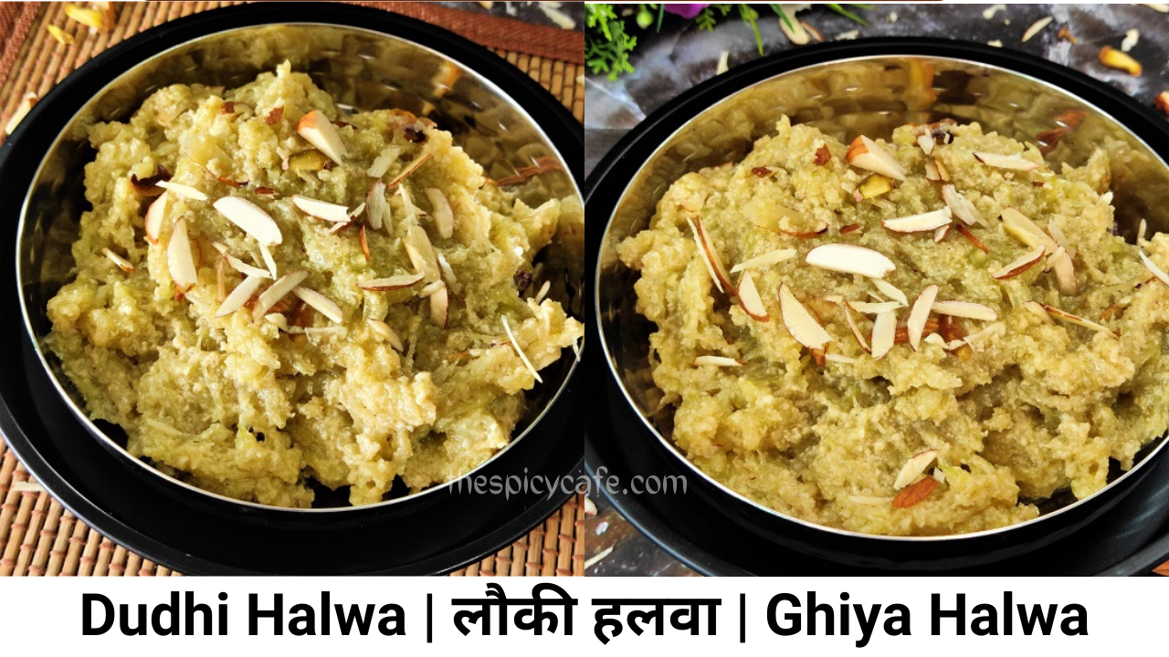 Dudhi halwa also called Lauki Ka Halwa is a traditional Indian dessert made with grated dudhi / lauki (bottle gourd) along with khoya / mava (reduced milk solids), ghee, sugar, roasted nuts & caredmon.