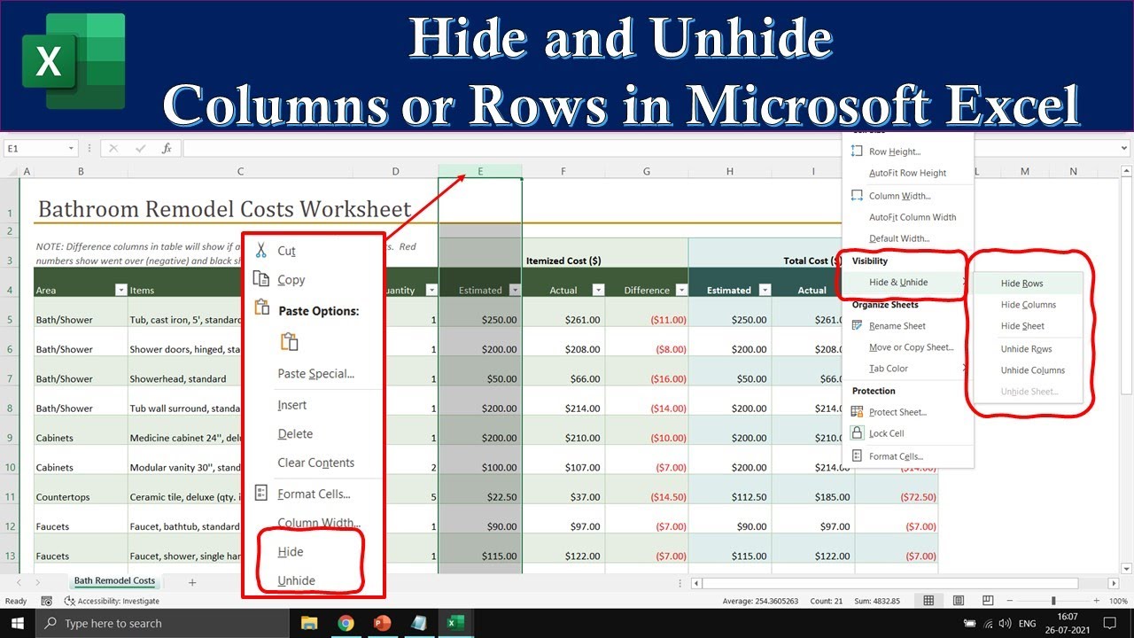 Excel for Beginners: How to Hide and Unhide Columns and Rows