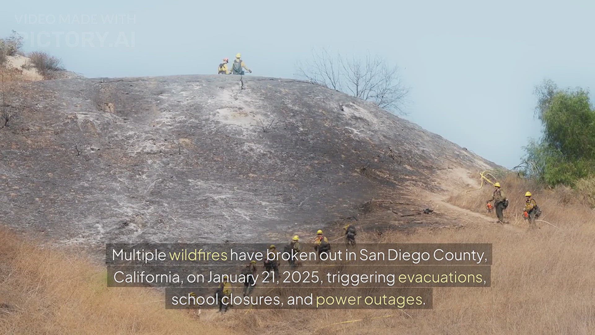 Multiple wildfires in San Diego County have prompted evacuations, school closures, and power outages, while strong winds and dry conditions continue to fuel the flames. Red flag warnings remain in effect across Southern California as officials battle several fires, including the Palisades and Eaton blazes in Los Angeles County. Over 69,000 people are without power as the region faces heightened fire risks.