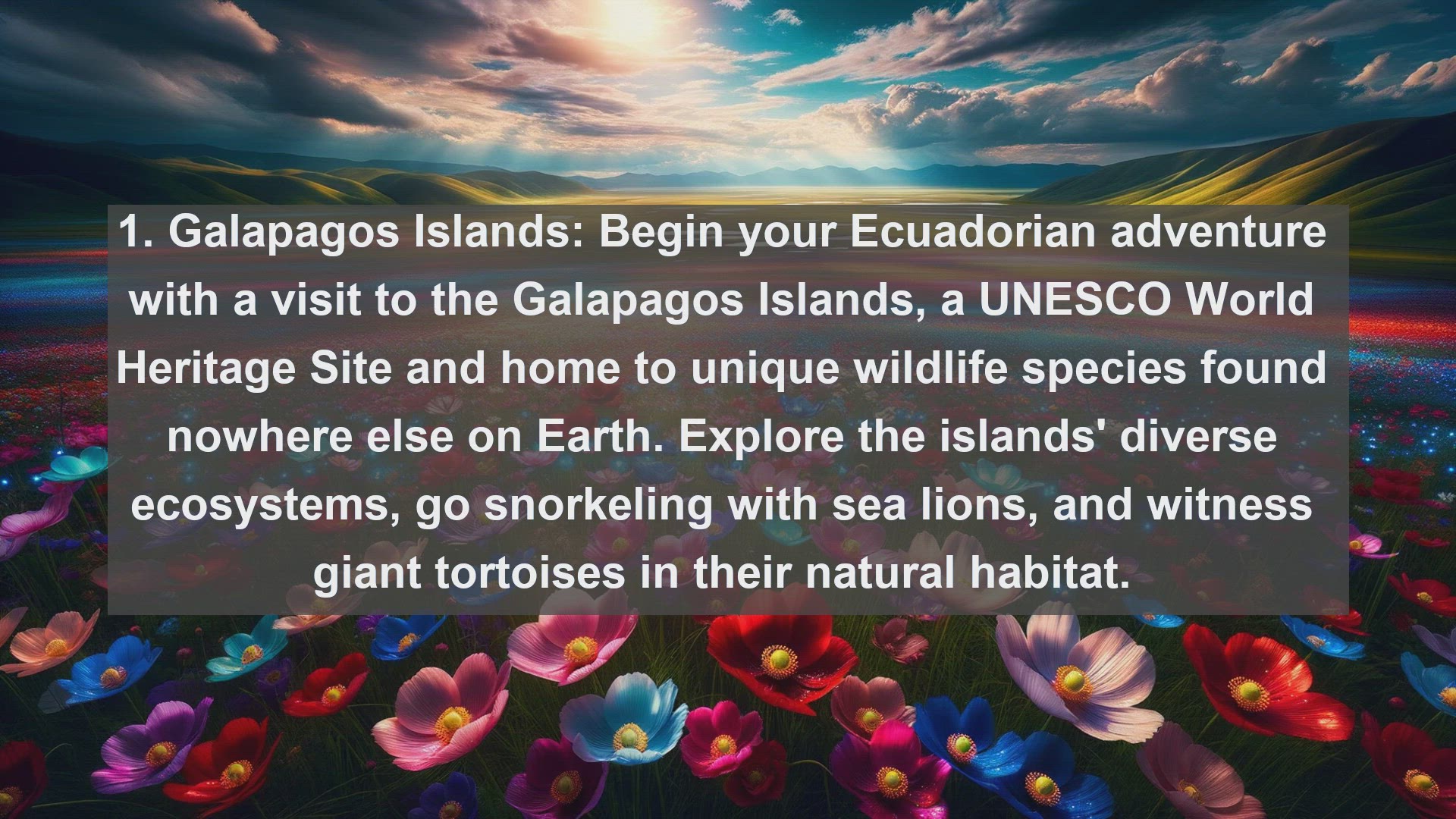 "Embark on a journey through Ecuador's diverse landscapes and vibrant culture with our guide to the top 10 famous places in this enchanting country. From the stunning Galapagos Islands to the historic cities of Quito and Cuenca, discover the best of Ecuador's natural wonders and cultural treasures."