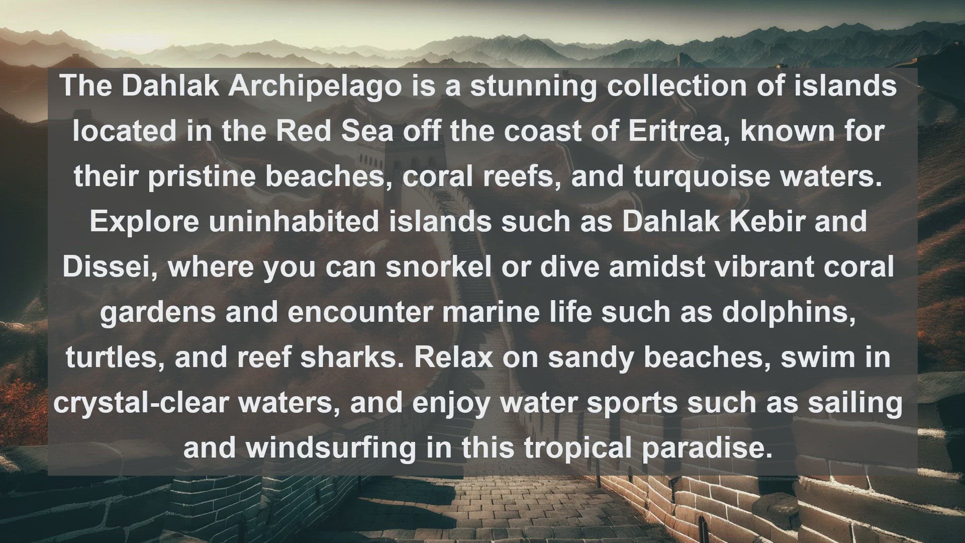 Embark on a journey through Eritrea's breathtaking natural landscapes with our guide to the top 10 destinations you can't miss. From rugged mountains to pristine coastlines and ancient deserts, discover the diverse beauty that makes Eritrea a hidden gem for nature lovers.
