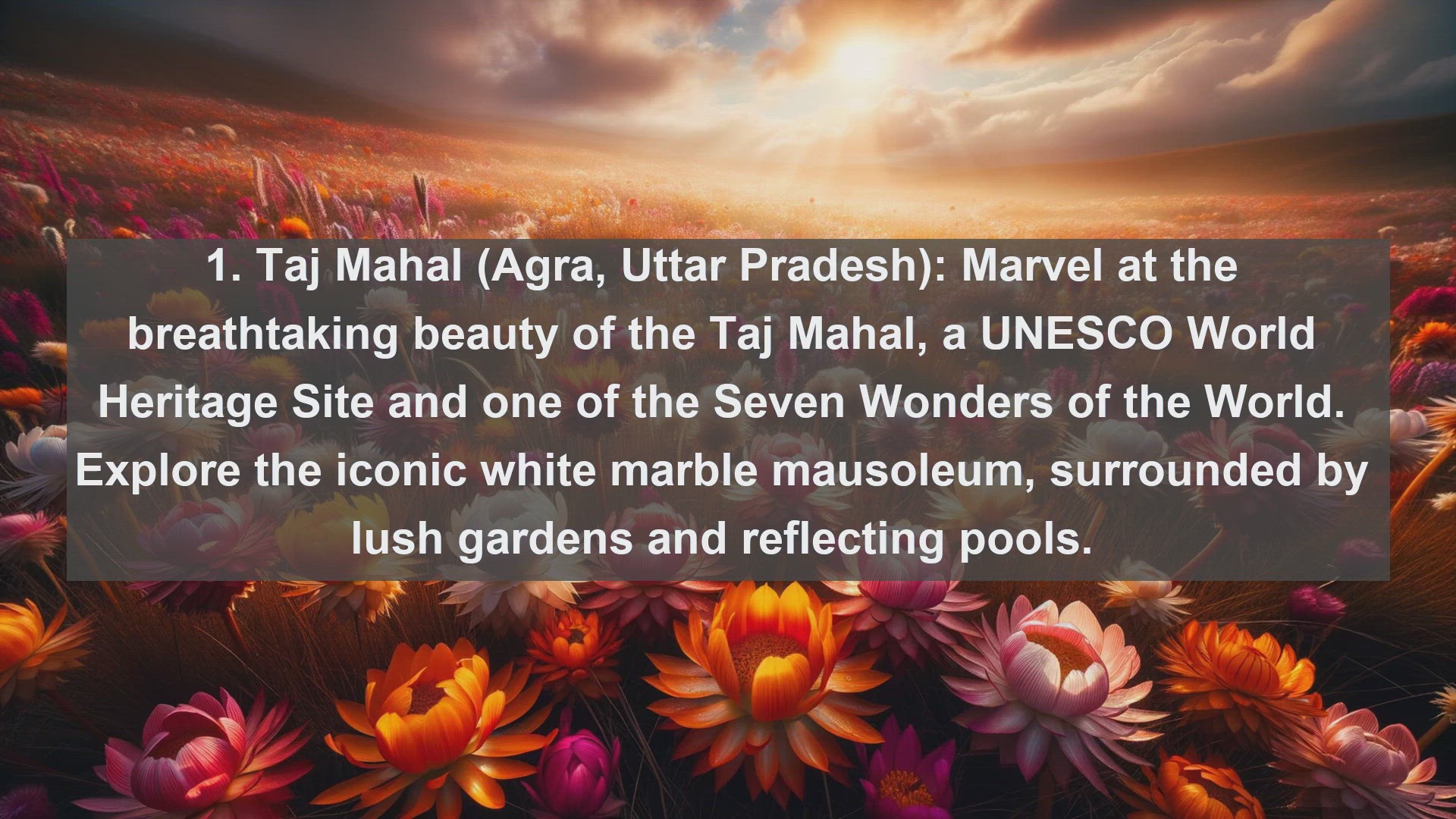 "Embark on a journey through India's rich heritage and cultural diversity. From majestic monuments to sacred temples and natural wonders, discover the top 10 famous places that define the beauty and charm of India."