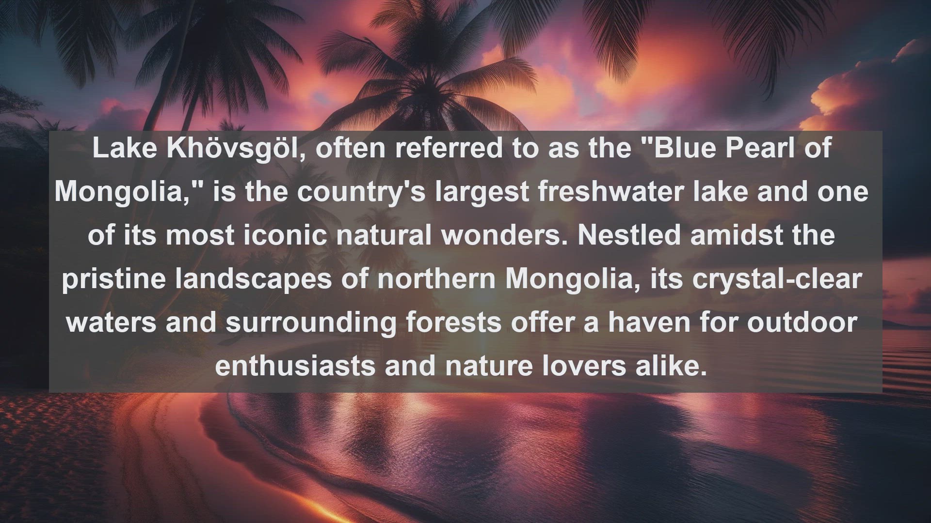 Dive into the breathtaking beauty of Mongolia's lakes with this curated list of the top 10 must-visit destinations. From pristine alpine lakes nestled in the mountains to vast expanses of shimmering waters amidst the Mongolian steppe, embark on a journey to discover the wonders of Mongolia's famous lakes.