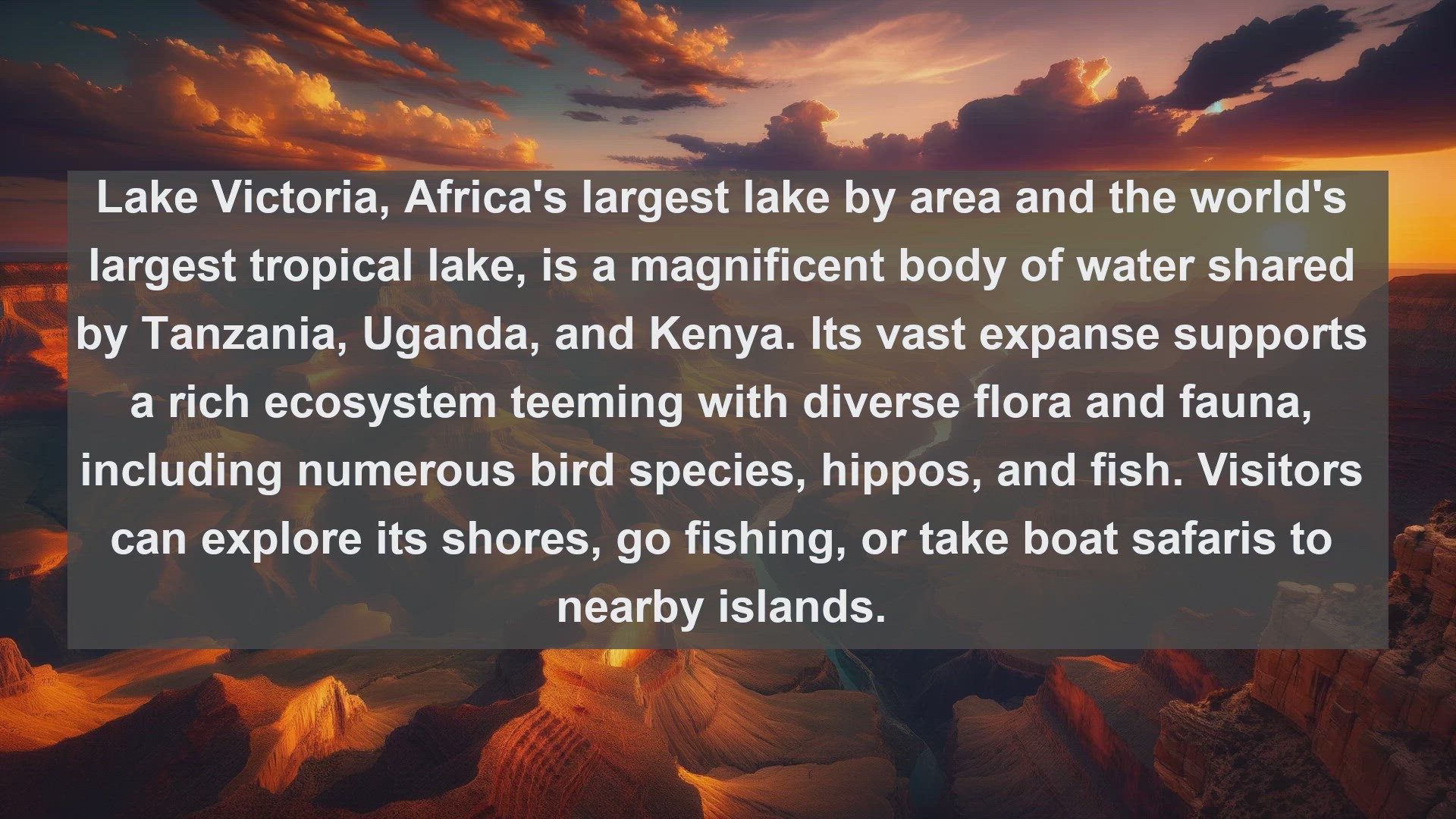 Embark on a captivating journey through Tanzania's diverse landscapes and discover its top 10 most famous lakes. From the vast waters of Lake Victoria to the crystal-clear depths of Lake Tanganyika, immerse yourself in the beauty and biodiversity of these breathtaking natural wonders. Whether you're a wildlife enthusiast, an adventure seeker, or a nature lover, join us as we uncover the hidden gems of Tanzania's lakeshores.