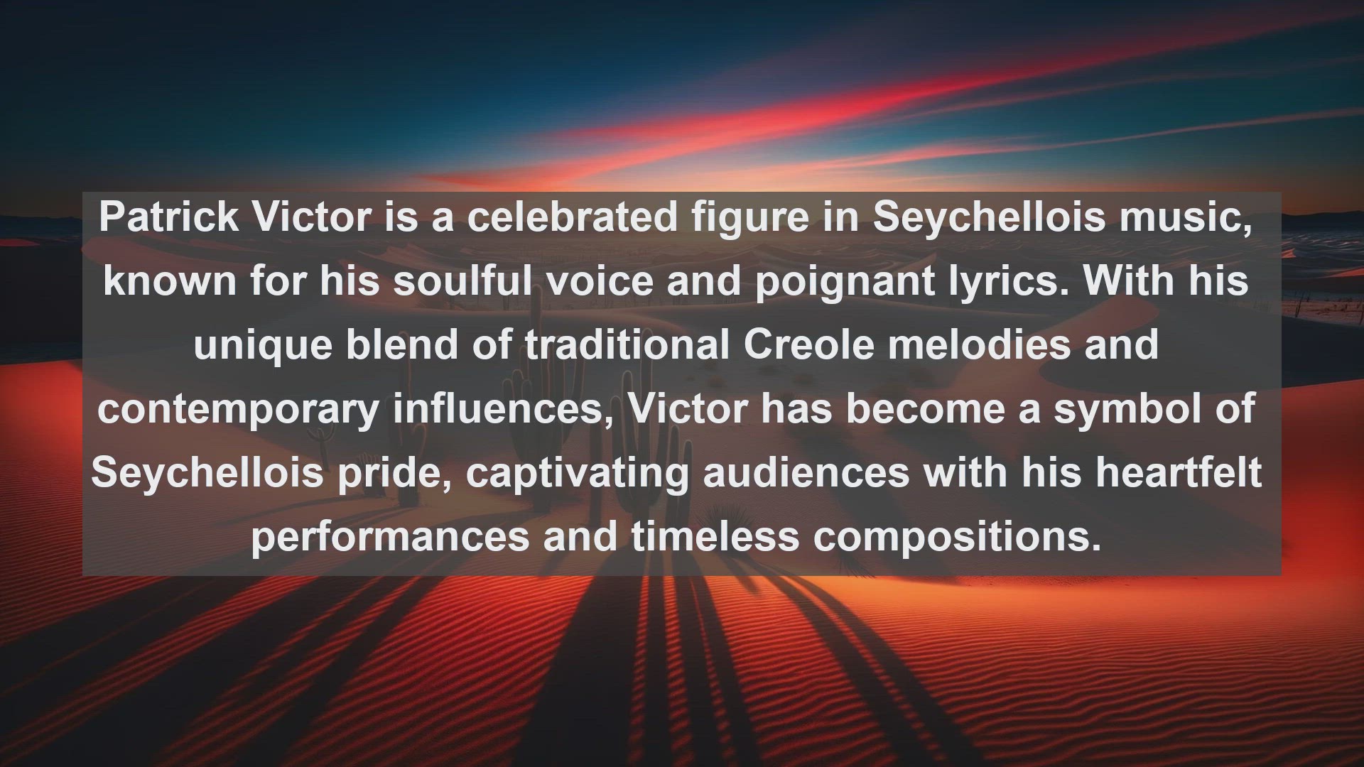 Dive into the enchanting world of Seychellois music with this countdown of the country's top 10 most renowned singers. From soothing Creole melodies to upbeat sega rhythms, explore the diverse voices and captivating performances that define Seychellois music culture.
