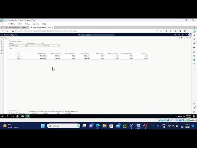 transfer of project budgets to the GL