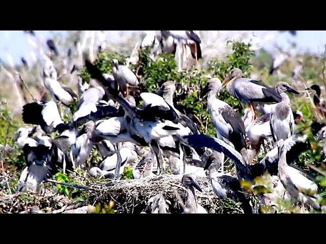 Amazing of lake - small bird or gain bird life on nest ar Avean area zoo