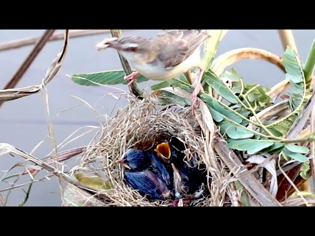 The nest grown bird or babies eating on nest