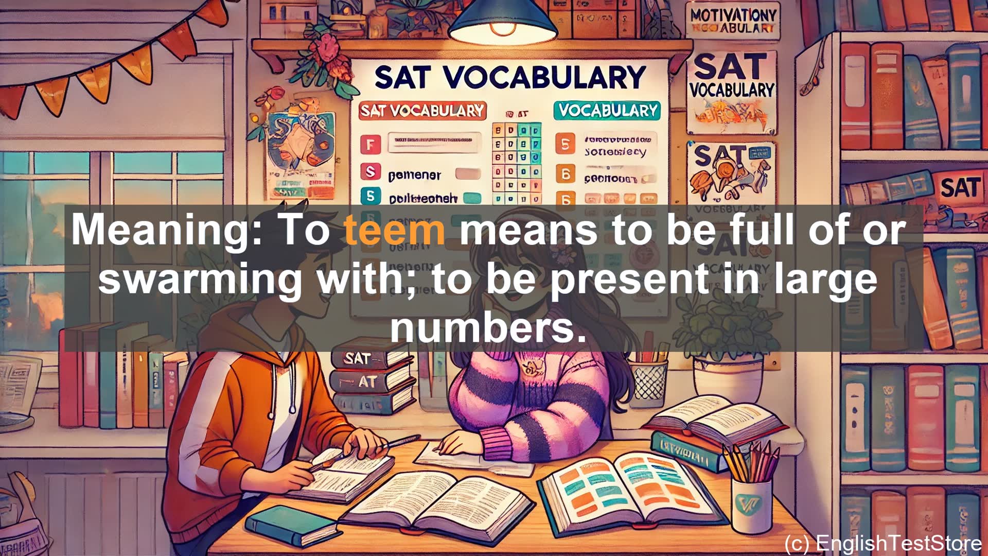 Learn the meaning, usage, and origin of the verb 'teem'. Discover how to correctly use this word to describe abundance and overflowing activity in various contexts, from bustling city streets to diverse ecosystems. Perfect for SAT preparation and vocabulary enhancement.