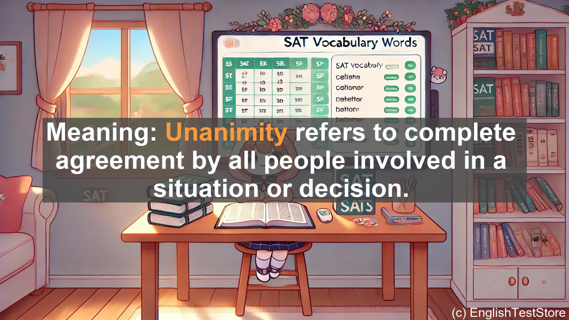 Learn about the SAT vocabulary word 'unanimity', including its meaning, origin, synonyms, antonyms, and usage examples. Discover how this term, which refers to complete agreement by all involved, can enhance your SAT performance in reading comprehension and essay writing.