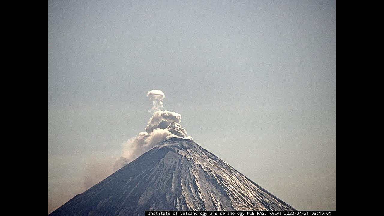 Klyuchevskoy volcano blows steam ring, eruption 20-21 April 2020