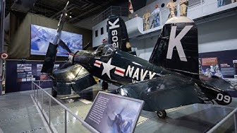 A new exhibit that opened on April 23 in the EAA Aviation Museum’s Eagle Hangar honors the late Thomas Hudner, a Korean War Medal of Honor recipient, with a Corsair aircraft that replaced the one Hudner used in his heroic actions that earned him the Medal of Honor.