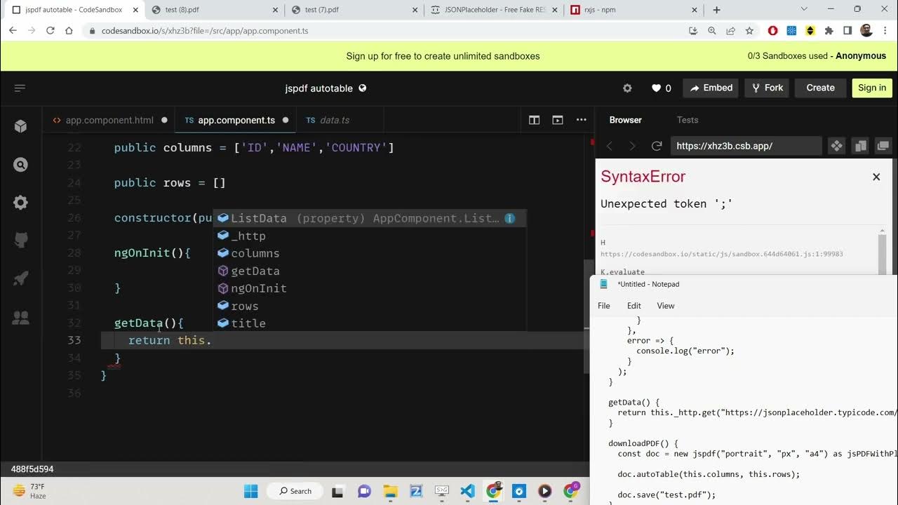 Angular 14 jsPDF Autotable Project to Export REST API JSONPlaceholder HTML5 Table to PDF Document
