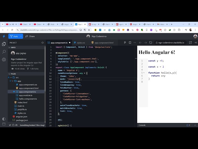 Angular Codemirror Syntax Highlighter Example to Display Source Code in Browser Using TypeScript