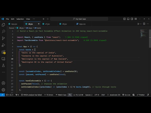 Build a React.js Text Scramble Effect Animation in JSX Using react-text-scramble Library in Browser
