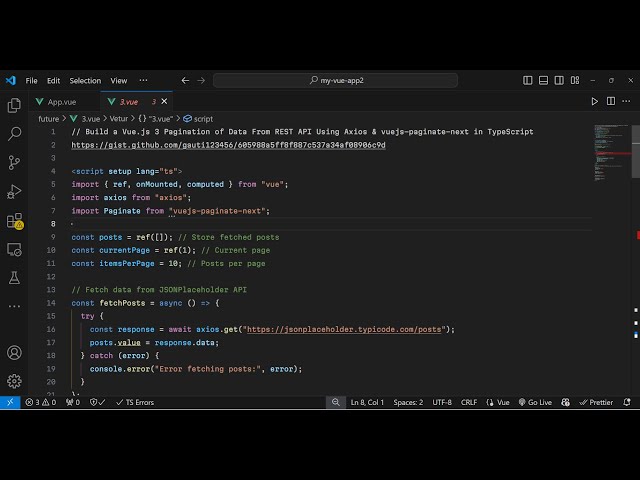Build a Vue.js 3 Pagination of Data From REST API Using Axios & vuejs-paginate-next in TypeScript