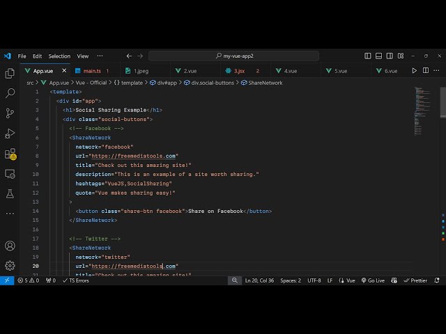 Build a Vue.js 3 Popup Modal Social Sharing Buttons in Browser Using vue-social -sharing in TS
