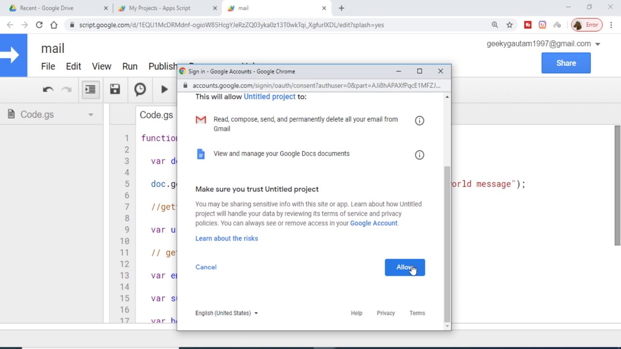 Google Apps Script Example to Create Files in Google Drive and Send it to Gmail