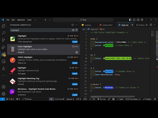How to Highlight Colors in CSS Code With Live Preview in Visual Studio Code Using Extension