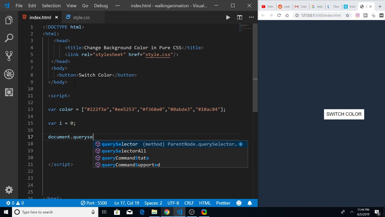 How to Switch Background Color of Webpage in Pure HTML5 CSS3 & Javascript