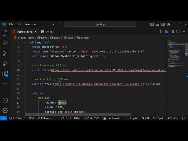 Javascript Ace Editor Syntax Highlighter Example to Highlight Source Code in Browser Full Example