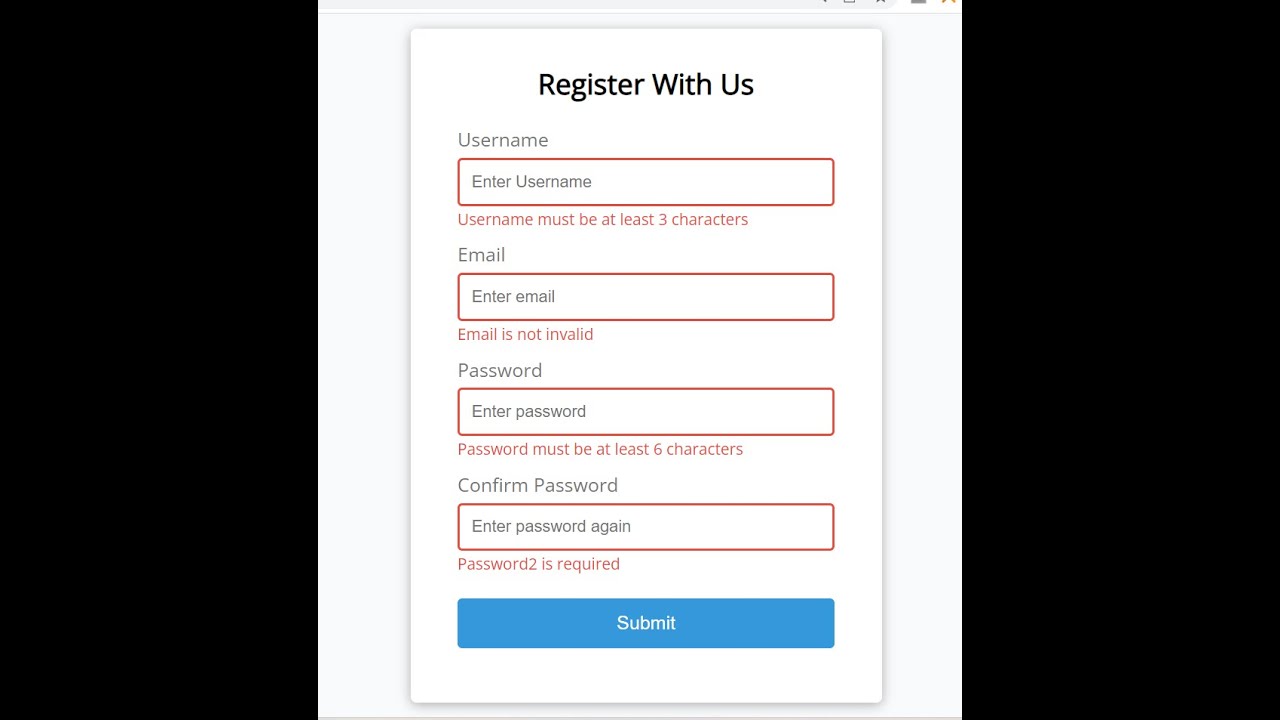 Javascript Project to Validate HTML5 Form With Error Messages Using CSS3