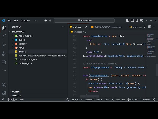 Node.js Express FFMPEG Project to Create Slideshow of Images and Export to MP4 Video in Browser