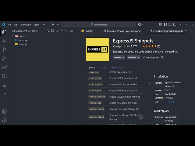 Node.js Express Snippets Extension in VS Code to Generate & Automate Express Code