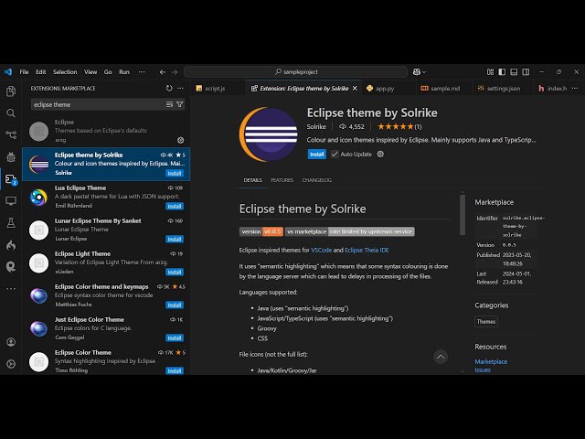 use the theme directly inside vs code