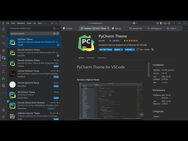 integrate the py Charm theme inside your