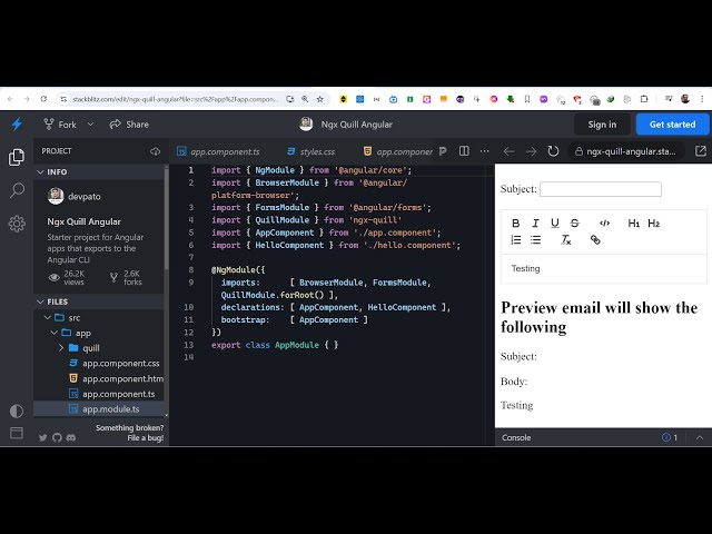 Angular Quill Wysiwyg Rich Text Editor With Controls & Emoji Using ngx-quill Library in TypeScript