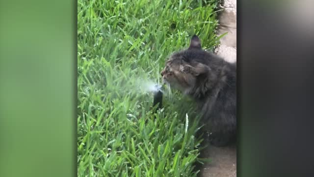 A clever cat came up with an ingenious way to cool himself down on a hot day by waiting for the garden sprinklers to pop up and heading for a sip. In the amusing footage from Spring, Texas - where the average high is above 87F (30C) from May to September - clever puss Scar Kitty laps away at a garden sprinkler's water. Owner Alida Kinkaid, 51, said she noticed Scar’s unique approach as she walked around her yard on July 15. She said since the family recently replaced their sprinkler heads, Scar has opted to drink fresh water straight from the sprinklers, rather than opt for his bowl. Given her cat's unusual approach, Alida decided to film the moment to share with friends and family.