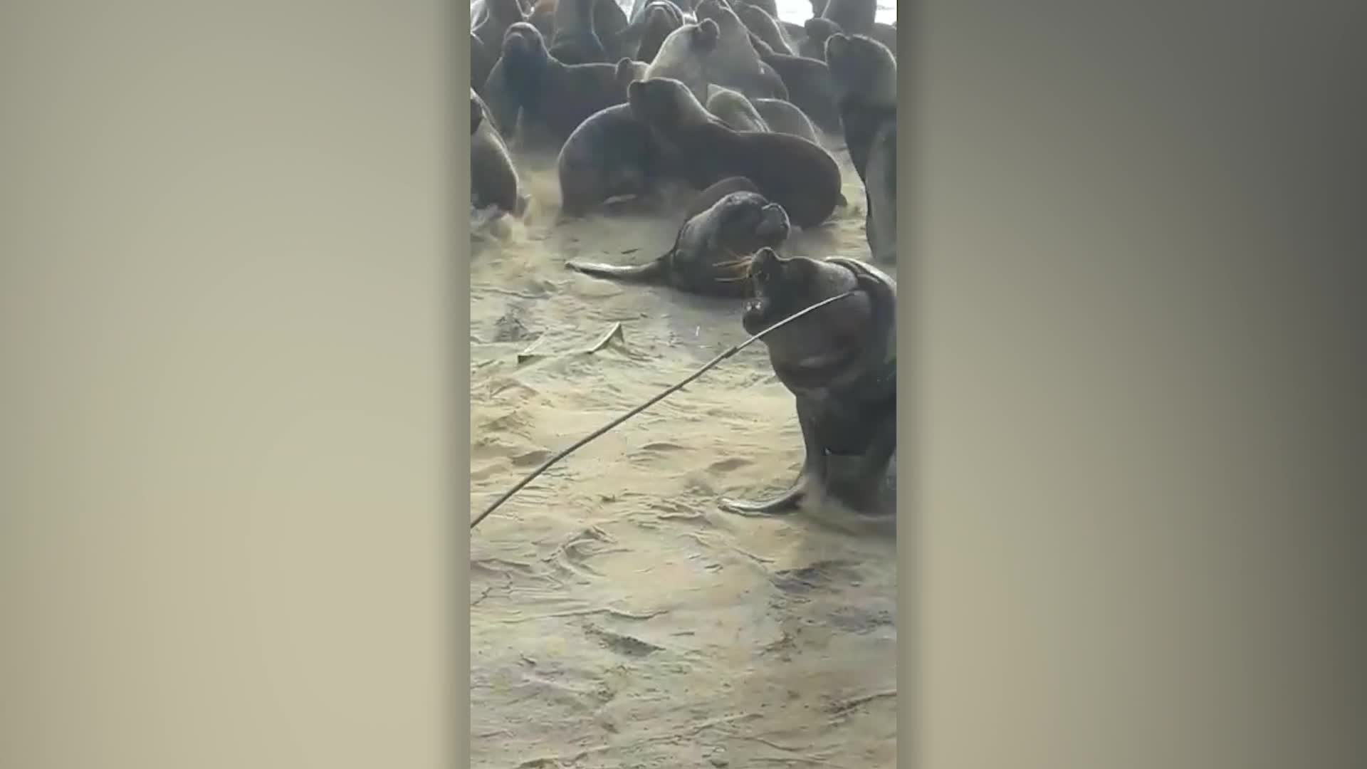 A group of rescuers saved a sea lion after he got his head stuck inside a tire while swimming. The creature was spotted by beachgoers with the rubber tire wrapped tightly around its portly neck. Clearly in some discomfort, the passers-by called for the help of a local wildlife group, Fundacion Fauna Argentina (FFA). Knowing the trash was slowly cutting the animals air flow off as he struggled to get it off, they knew they had to act quickly. So the quick thinking group – who are all volunteers and dedicate themselves to protecting wildlife and environment – fashioned a pole with a hook on the end. One brave member inched close to the increasingly erratic sea lion in Mar del Plata, Argentina. After several failed attempts, the volunteer manages to hook the makeshift pole onto the edge of the tire. Then with a heave, the group begin pulling at the tire to loosen, as the sea lion thrashes around. And eventually, the tire flies off the sea lion, who dashes back to the ocean to cheers from onlookers.