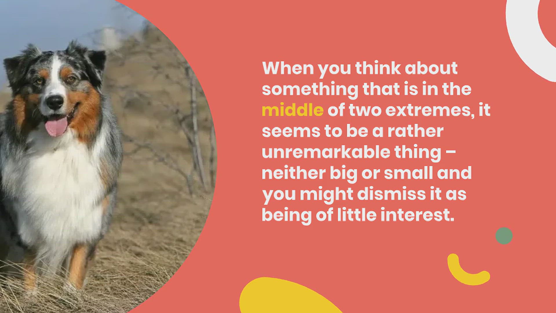 When you think about something that is in the middle of two extremes, it seems to be a rather unremarkable thing – neither big or small and you might dismiss it as being of little interest. But when it comes to dogs, that would be a huge mistake.