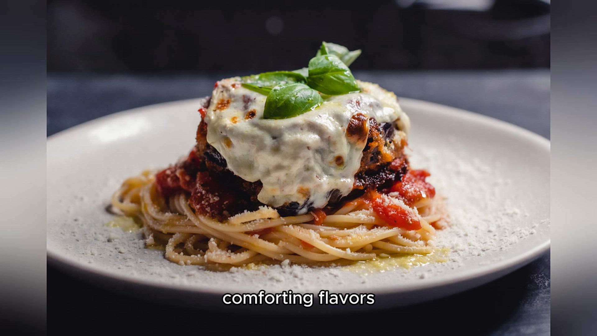 Crispy breaded eggplant slices layered with marinara and cheese.