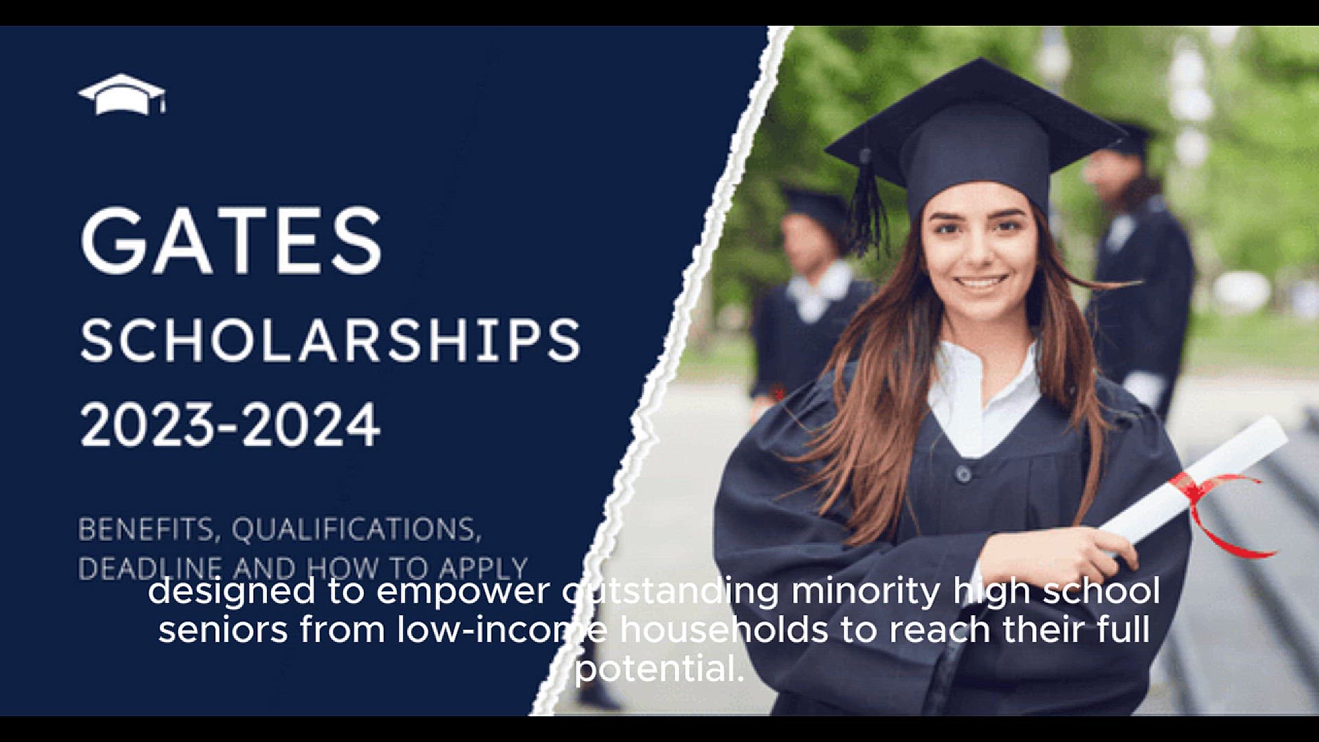 The Gates Scholarship is a highly competitive, last-dollar scholarship program designed to empower outstanding minority high school seniors from low-income households to reach their full potential.