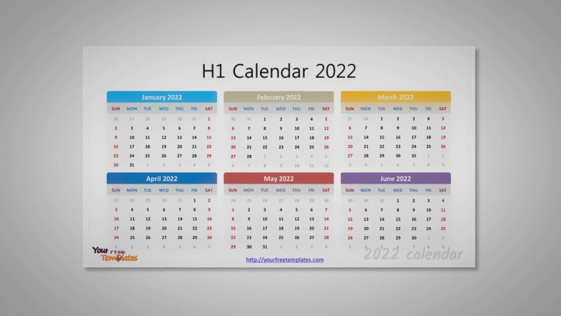 Free printable 2022 calendar monthly template with twelve, six, four, three, two months in one slide, and one style with US Federal holidays.